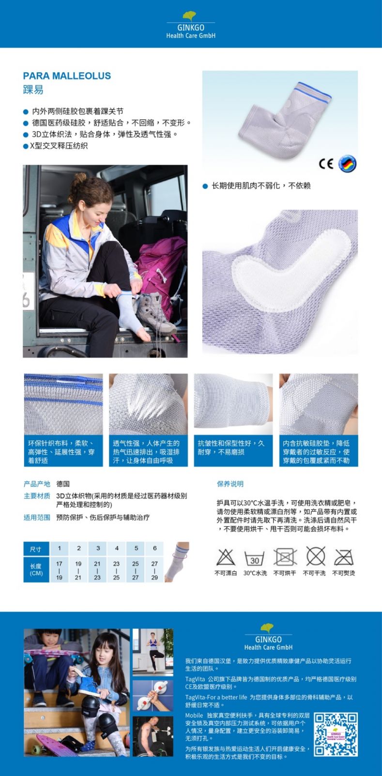 防止趋紧血液循环,人体科学设计服帖舒适,内置硅胶填充物以减少踝部积液。使用人士各式体育运动运动员,各式体育运动爱好者, 老年人,及足踝有伤损和足踝术后人士。