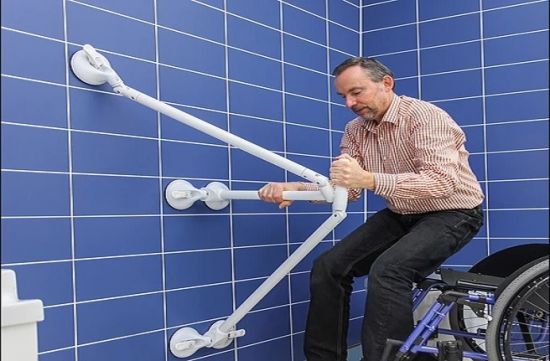 MOBELI系統十余年來,已证明了自己作为手持和老年人,残障人士日常生活中的实际帮手。移动手柄可以快速轻松地连接,同样易于拆卸。只需將兩個直徑為120毫米的吸垫均压在平坦的无孔表面上,按下真空桿 - 就完成了!外出旅行携带也十分方便!MOBELI系統人性化安全设计,无论是马桶边,淋浴区还是浴池附近,您都可以按照自己及家人所需自由组装。