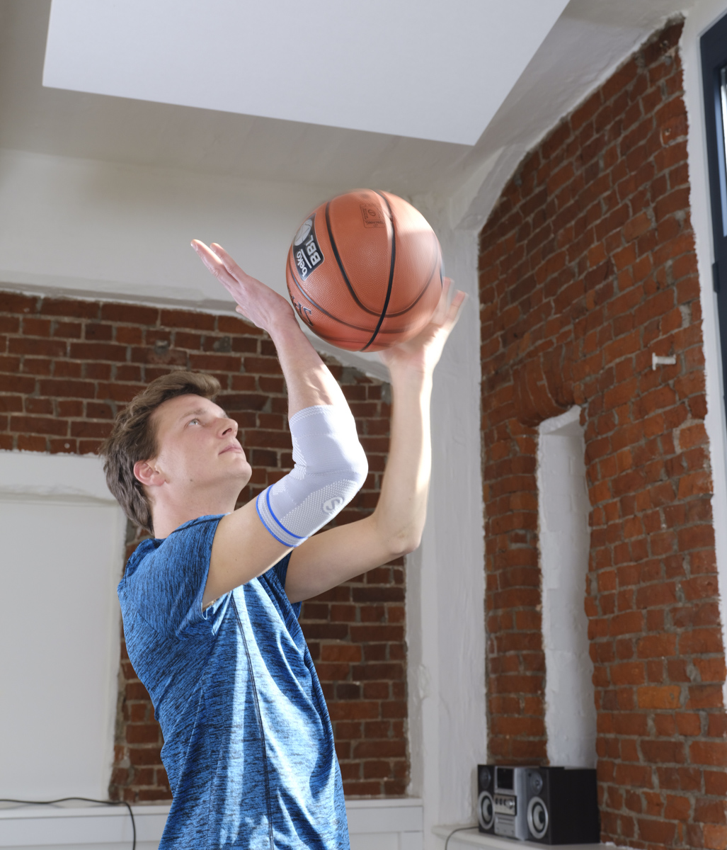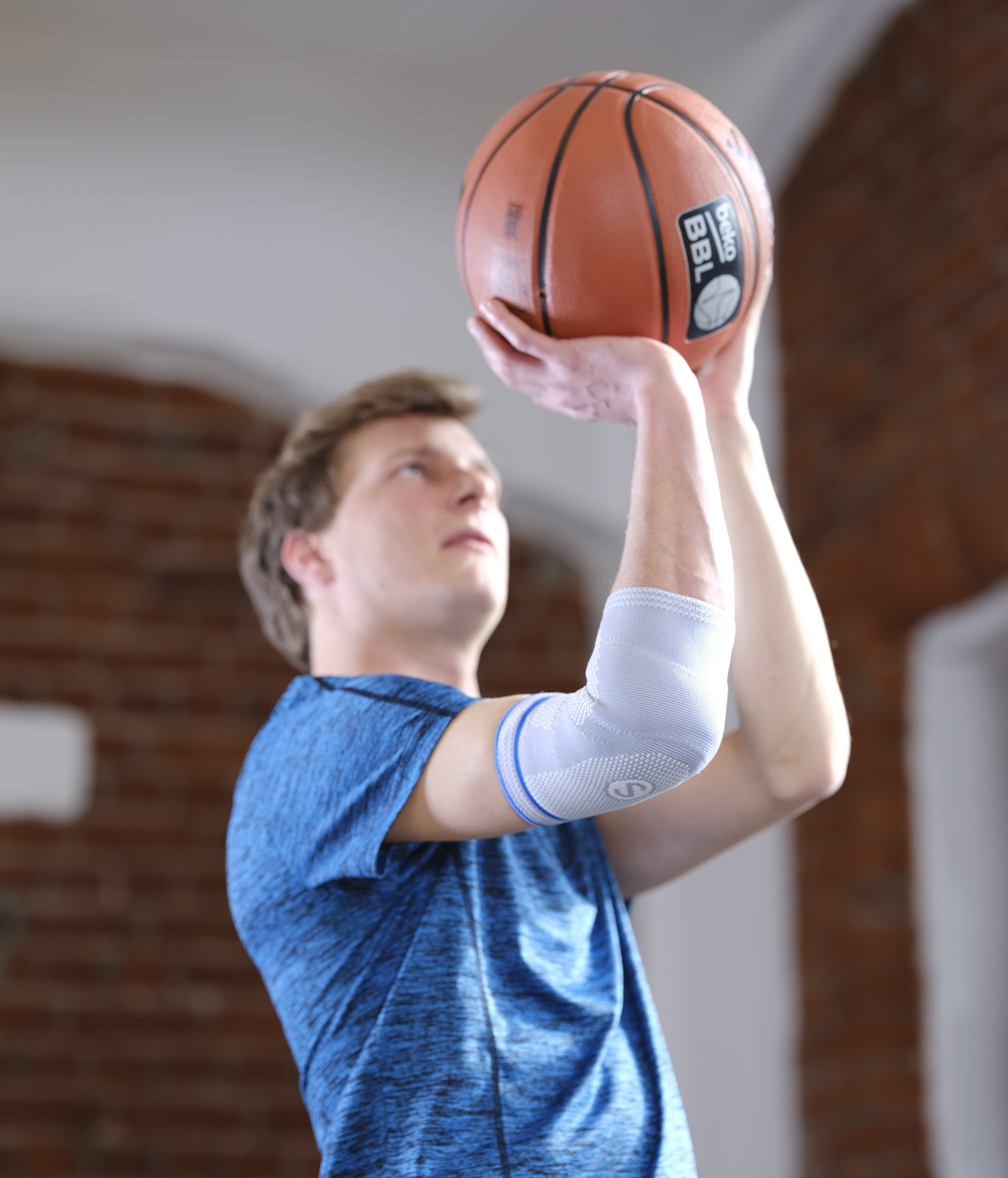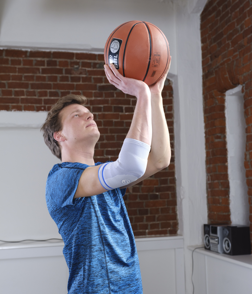 Das profilierte geformte Silikonpolster komprimiert unter gleichmäßigem Druck auf die Ansätze der Unterarmmuskulatur und erzielt durch die Gelenkbewegung eine Massagewirkung. Durch das Silikonpolster gelingt es, den Faserzug der Sehnenplatte abzulenken. Sehnenansatzschmerzen werden reduziert oder ganz beseitigt. Unter dem Tragen der Epicondylitis -Bandage bleibt die Zone stoßgeschützt und der Sehenensatz kann sich langsam regulieren.